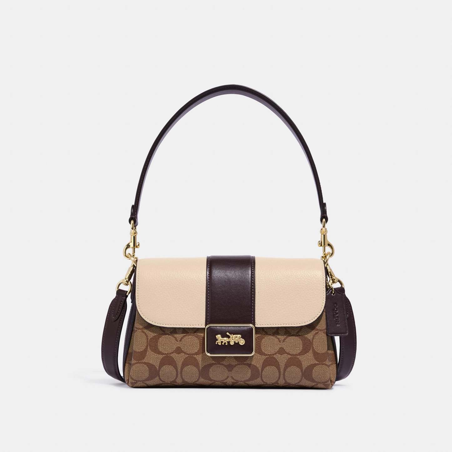 Signature coated canvas smooth leather refined pebble leather and snake-embossed leather Inside multifunction pocket Snap closure fabric lining Detachable handle with 8 1/4 drop Outside open pocket Detachable strap with 21 3/4 drop for shoulder or crossbody wear 10 1/4 (L) x 6 1/4 (H) x 3 1/4 (W) Style No. CC066 | Outlet Grace Shoulder Bag In Signature Canvas - Multi
