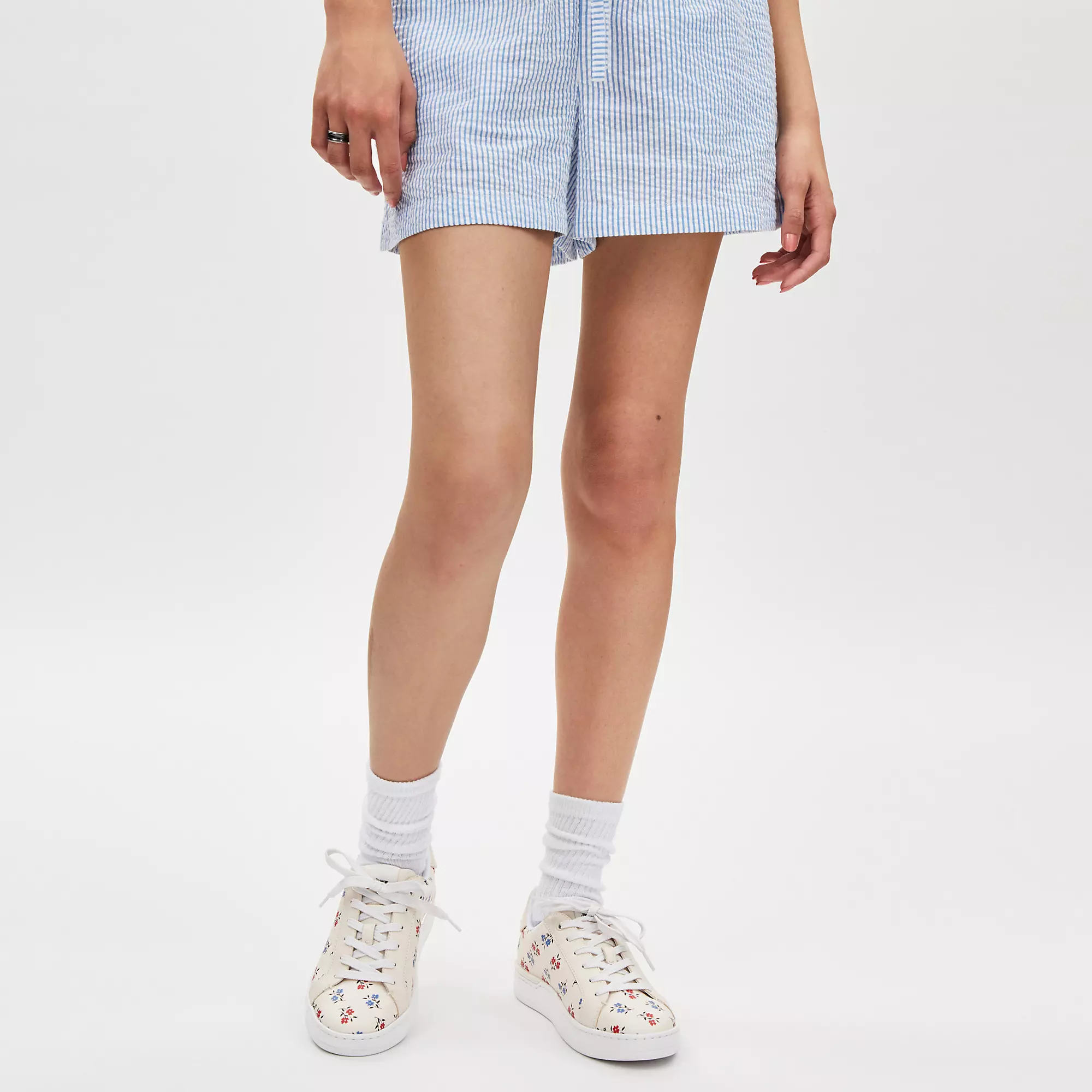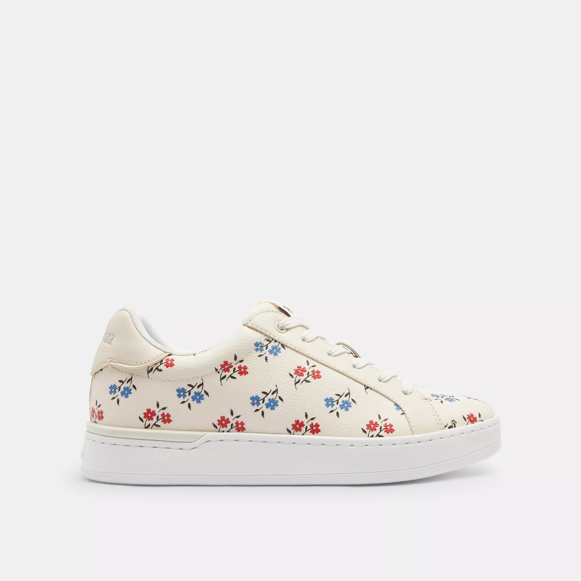 Printed coated canvas and leather upper Fabric lining and footbed Rubber outsole Lace-up closure Style No. CU095 | Outlet Clip Low Top Sneaker With Floral Print - White, Size - 7.5