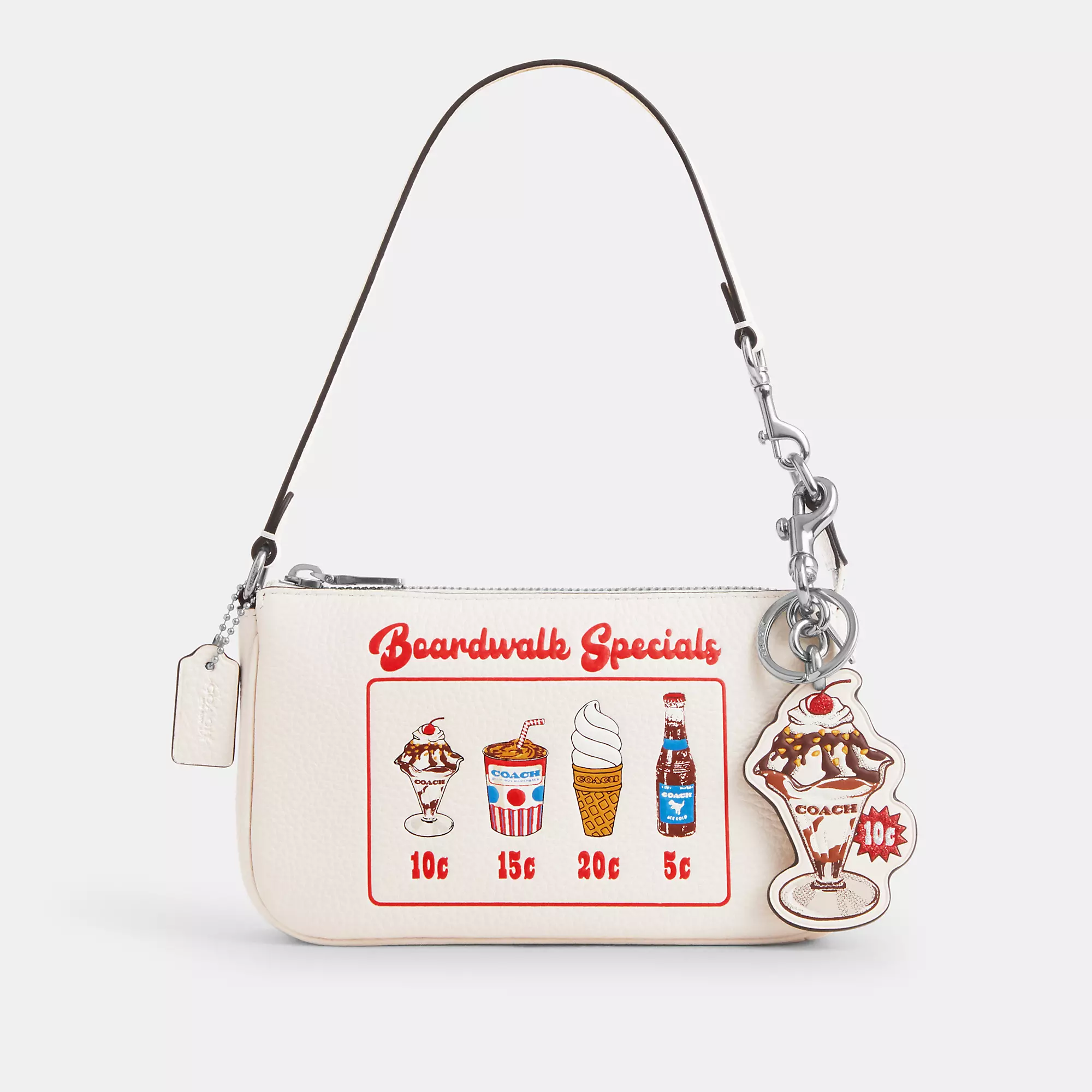 Smooth leather Attached split key ring and dogleash clip 2 (L) x 3 1/4 (H) Style No. CU306 | Outlet Ice Cream Bag Charm - White