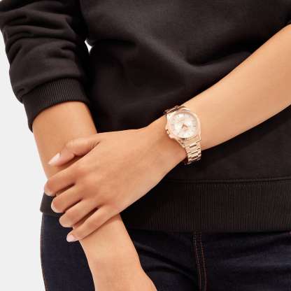 Rose gold tone case and bracelet Approx. case diameter - 37mm Mineral crystal Quartz movement Deployment closure Water-resistant to 99 feet Style No. C3628 | Outlet Libby Watch, 37 Mm - Pink