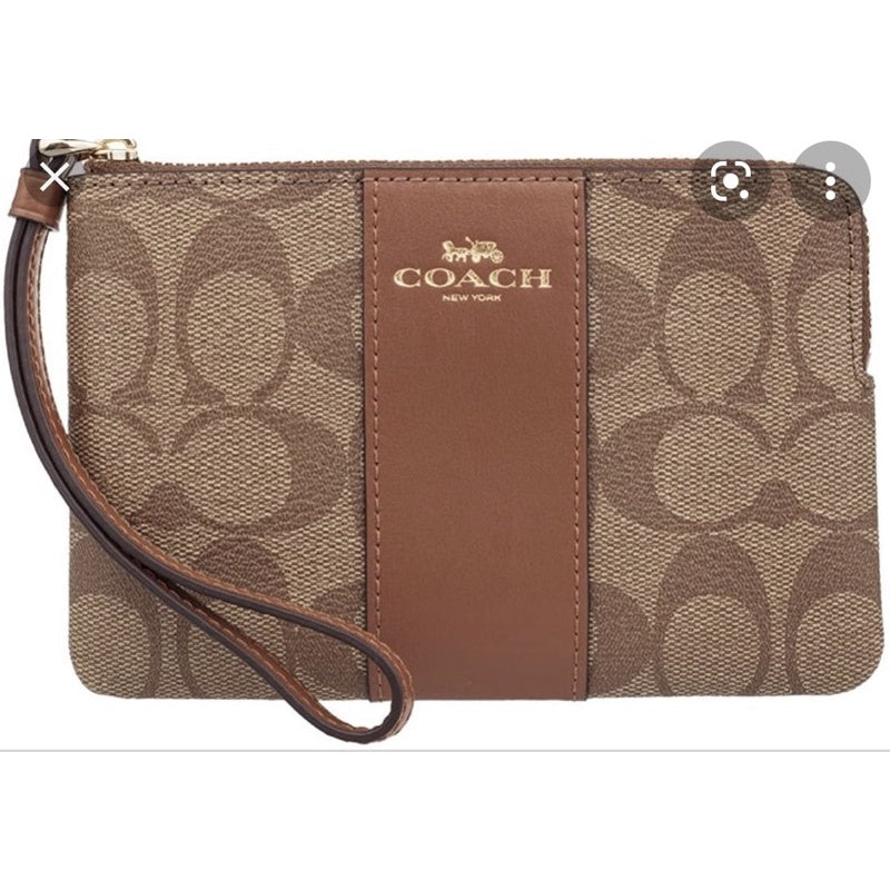 Wristlet Ladies Signature Bicolor Leather 閳?Model: SIG PVC LTH CRN ZIP Signature Pee Vee Sea Leather Corner Zip