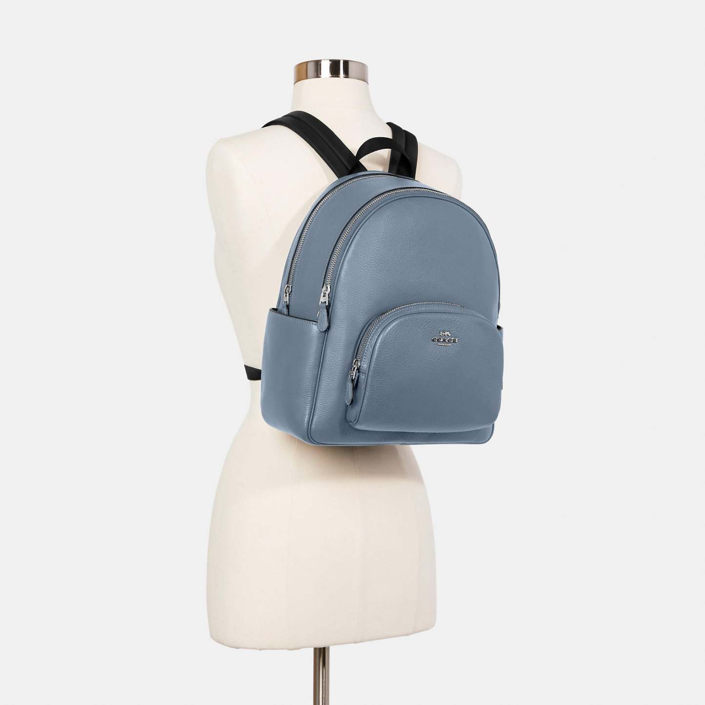 Refined pebble leather Inside zip and multifunction pockets Double zip closure fabric lining Handle with 2 1/4 drop Outside zip pocket Adjustable shoulder straps 10 3/4 (L) x 12 1/2 (H) x 4 3/4 (W) Style No. 5666
