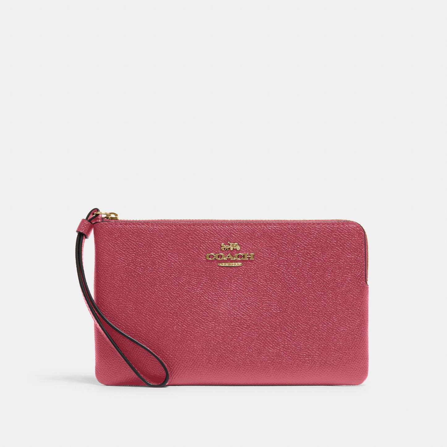 Crossgrain leather Two credit card slots Zip closure fabric lining Wrist strap attached 7 3/4 (L) x 4 3/4 (H) x 1/2 (W) Style No. 3888