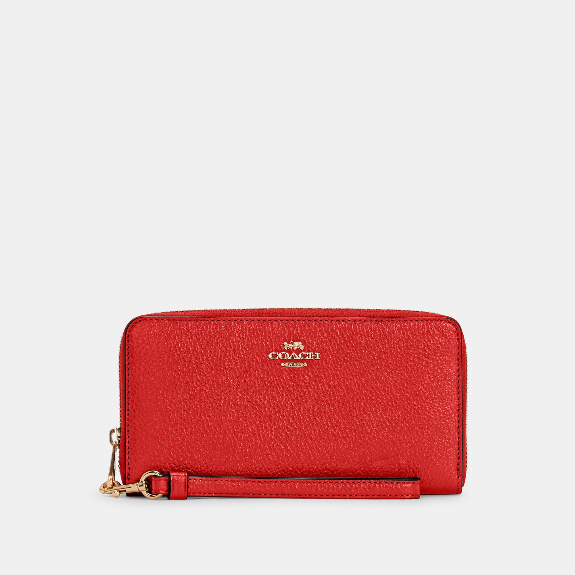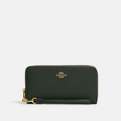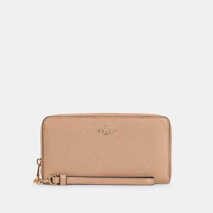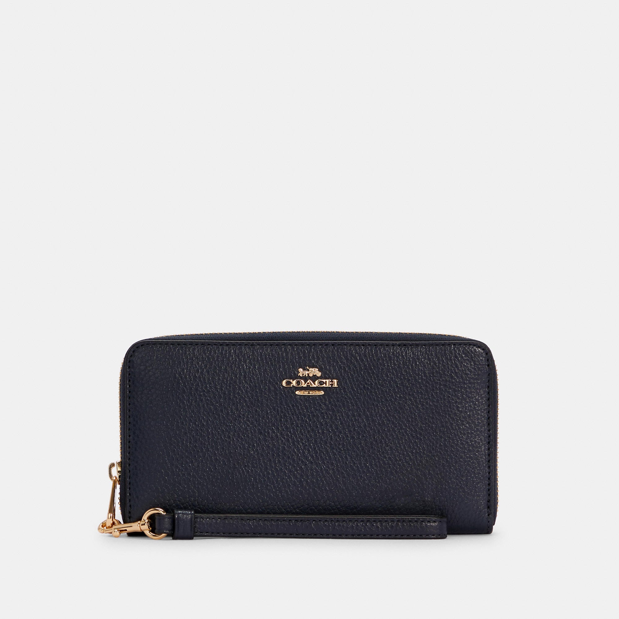 Refined pebble leather Twelve credit card slots Full-length bill compartments Inside zip coin pocket Zip-around closure Detachable wrist strap 7 1/2 (L) x 4 (H) x 1 (W) Fits all iPhone and Samsung Galaxy phones Style No. C4451 | Outlet Long Zip Around Wallet - Black