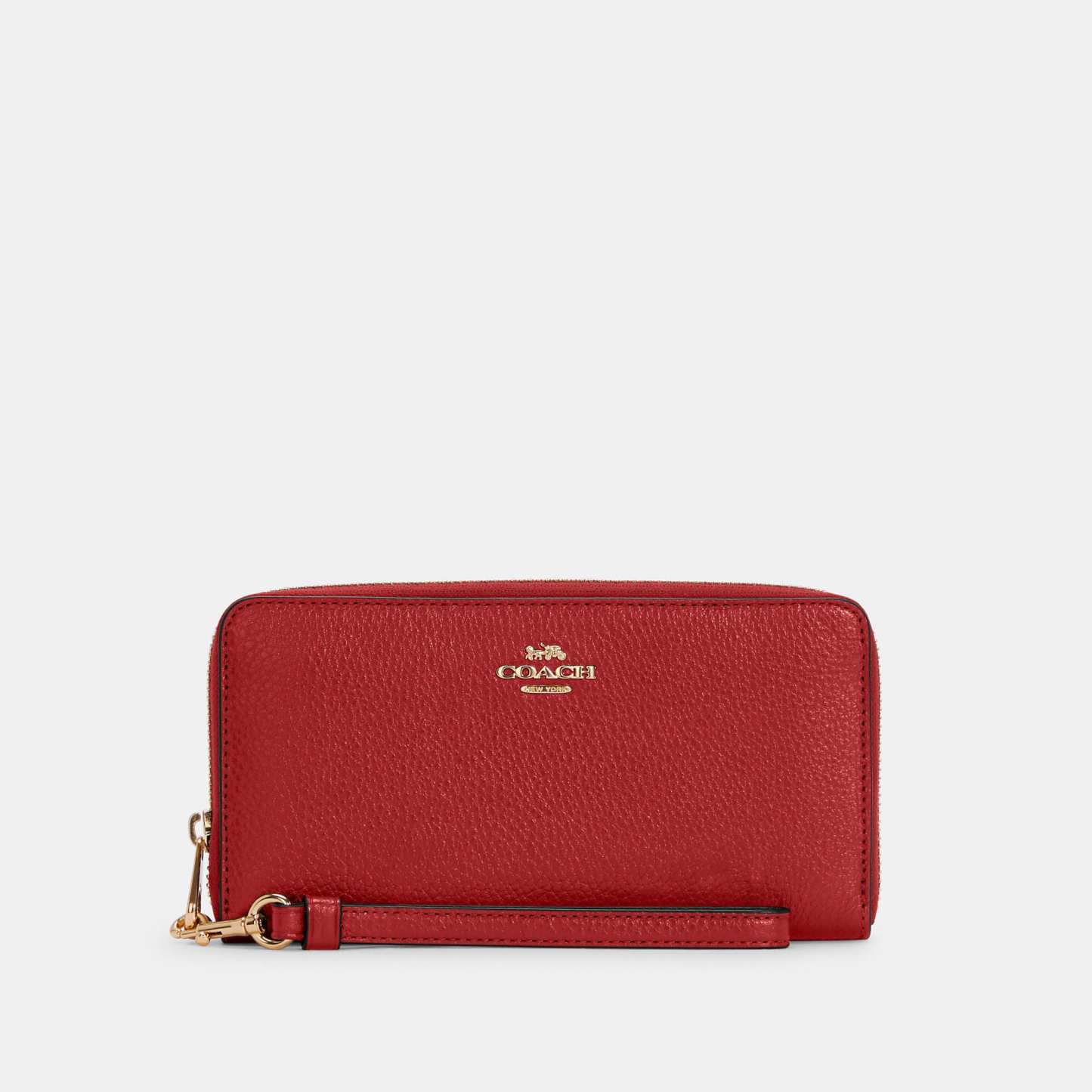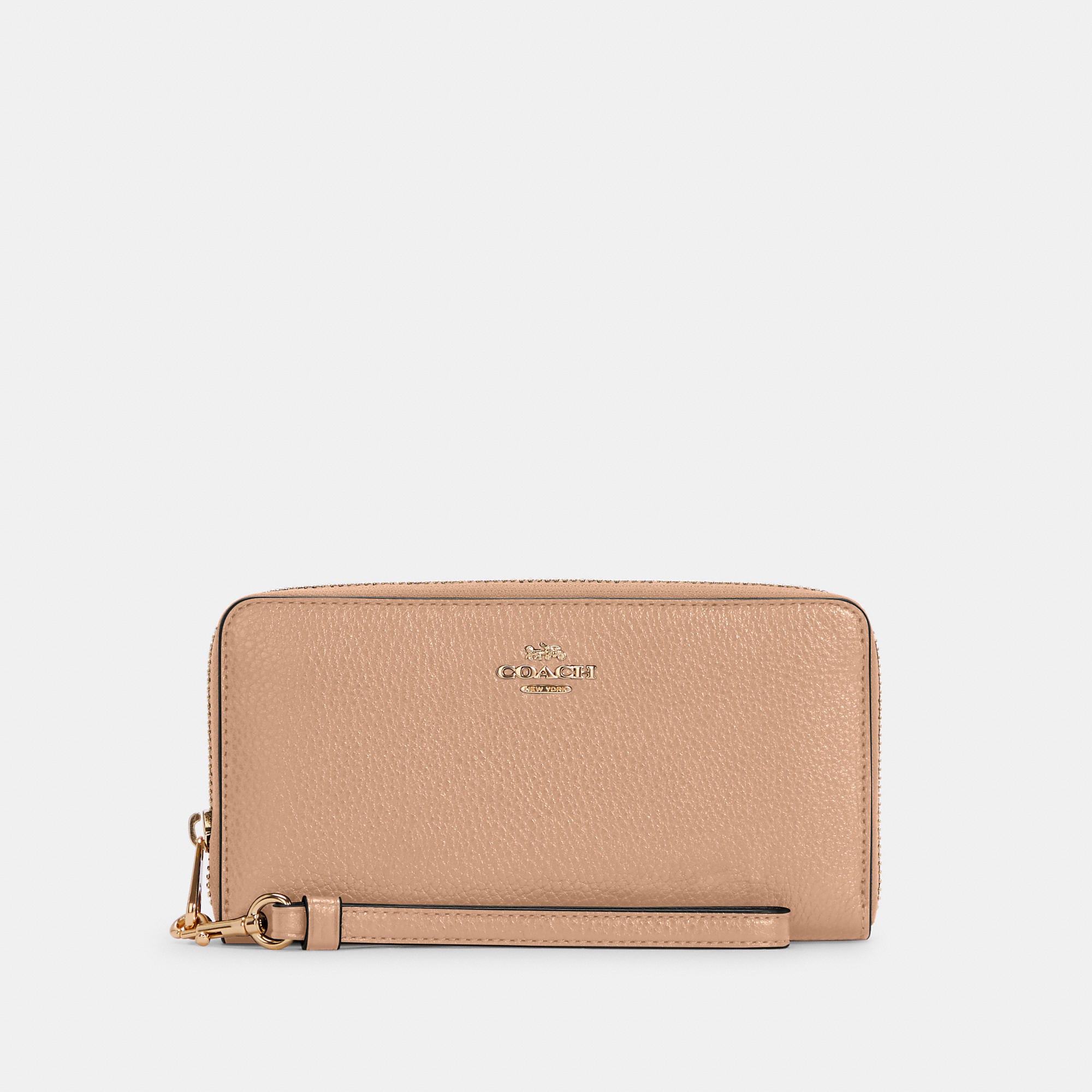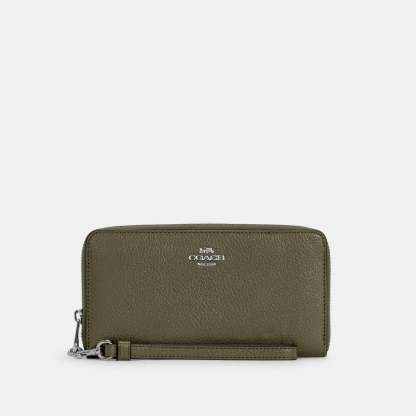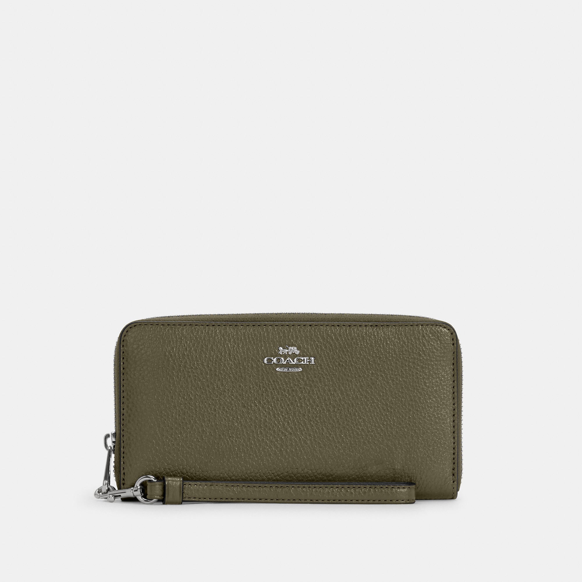 Refined pebble leather Twelve credit card slots Full-length bill compartments Inside zip coin pocket Zip-around closure Detachable wrist strap 7 1/2 (L) x 4 (H) x 1 (W) Fits all iPhone and Samsung Galaxy phones Style No. C4451 | Outlet Long Zip Around Wallet - Black