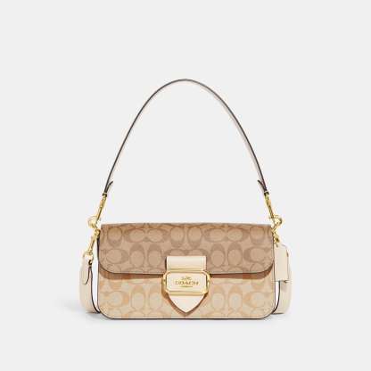 Signature coated canvas and smooth leather Inside zip and multifunction pockets Snap closure fabric lining Detachable handle with 9 drop Outside open pocket Detachable strap with 21 1/4 drop for shoulder or crossbody wear 10 1/2 (L) x 5 1/2 (H) x 2 1/2 (W) Style No. CH506 | Outlet Morgan Shoulder Bag In Blocked Signature Canvas - Multi