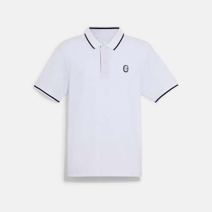 100% cotton Button closure Length - 28 1/4 Model is 6'2 (188cm) and wears a size M Style No. C9513 | Outlet Polo With Signature Details - White, Size - X-Small