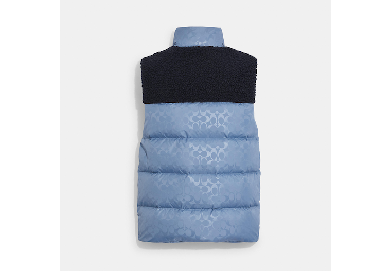 100% polyester Lining - 100% polyester Fill 1 - 90% down 10% feathers Fill 2 - 100% polyester Zip closure Zip pockets Water-resistant Length - 29 1/4 Model is 6'2 (188cm) and wears a size M Style No. CE332 | Outlet Signature Colorblock Sherpa Puffer Vest - Blue, Size - 2X-Large