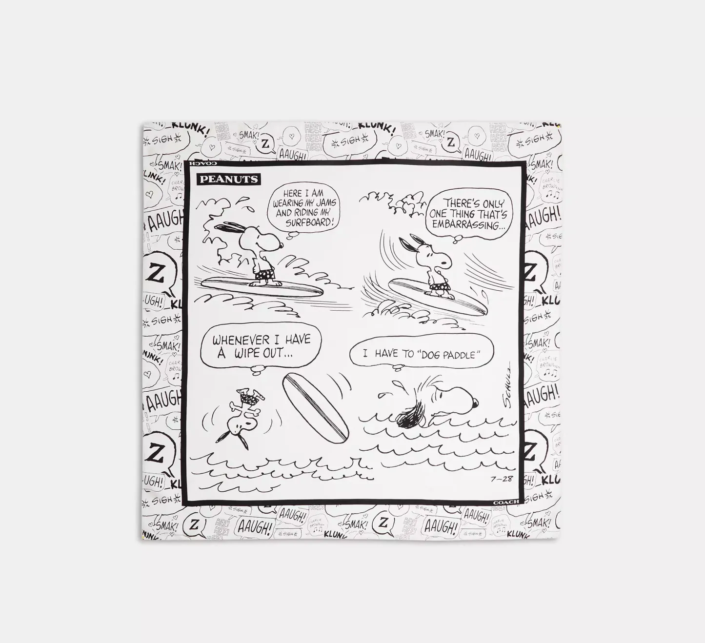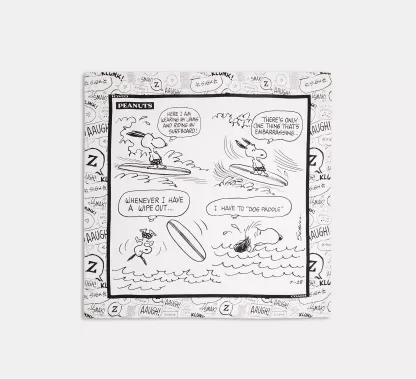 Celebrating years of memories, laughs and lots of Snoopy dances, Coach commemorates the 75th anniversary of “Peanuts” with a special collection starring Charlie Brown and friends. Add a playful touch to any look with this lightweight silk scarf featuring a classic humorous comic strip print from 1965.