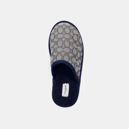 Signature jacquard upper Faux shearling lining and footbed Rubber outsole Slip on Style No. C7078