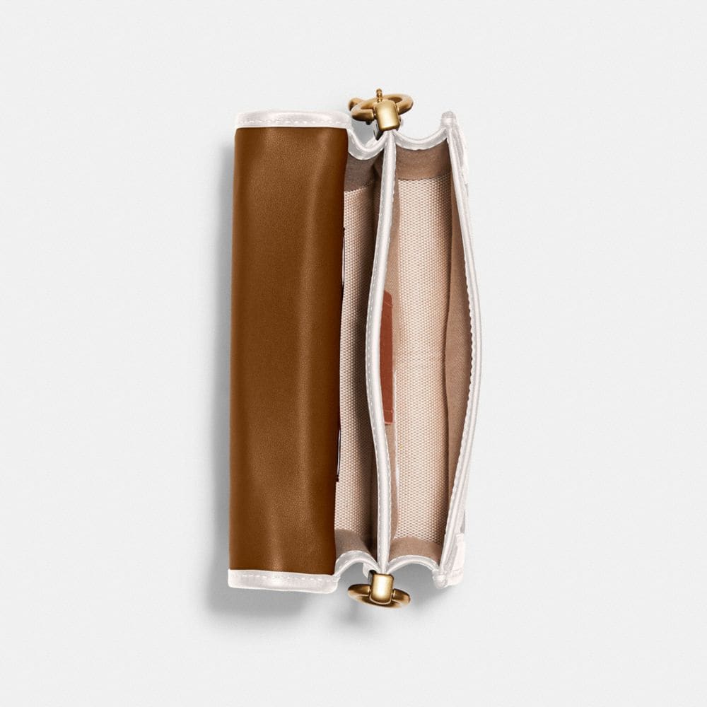 Detachable strap with 21 1/2" drop for shoulder or crossbody wear