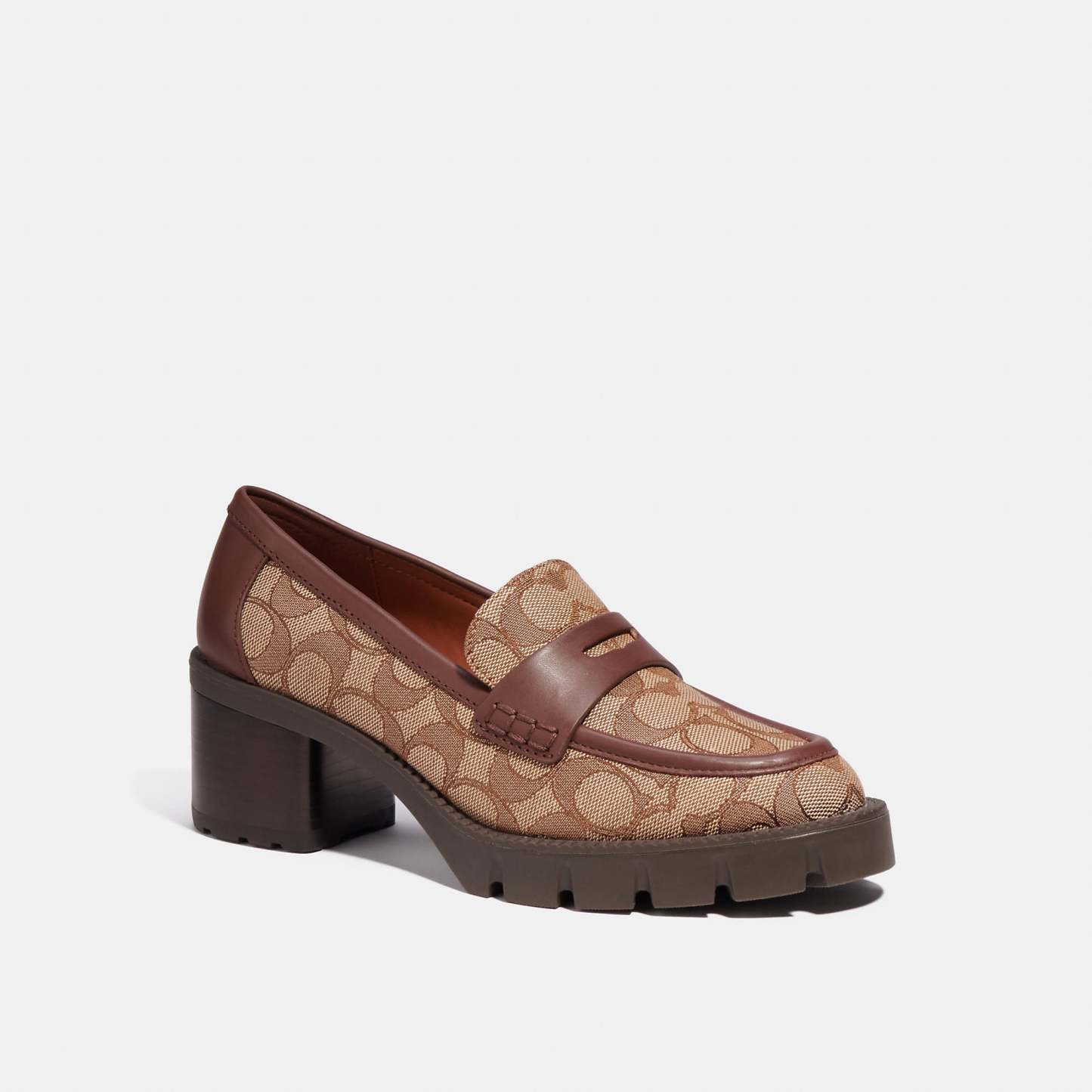Signature jacquard and leather upper Man-made leather lining and footbed Rubber outsole Slip on 2 heel This piece is crafted of our Signature jacquard made from a blend of organic cotton and recycled polyester Style No. CC949 | Outlet Colleen Loafer In Signature Jacquard - Brown, Size - 9.5
