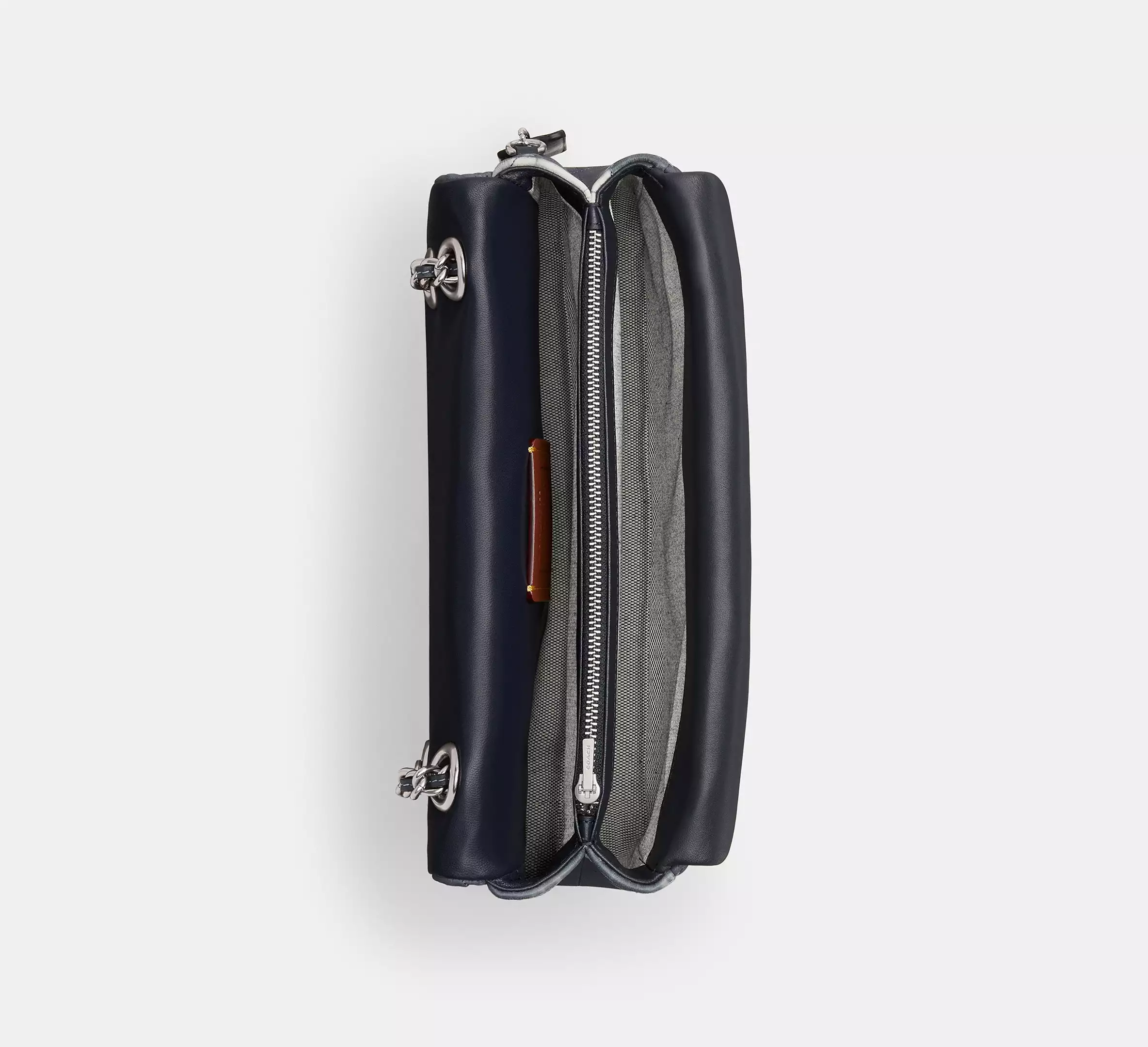- Chain strap with 21.5" drop for shoulder or crossbody wear