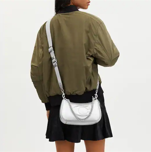 Detachable strap with 22 3/4" drop for shoulder or crossbody wear