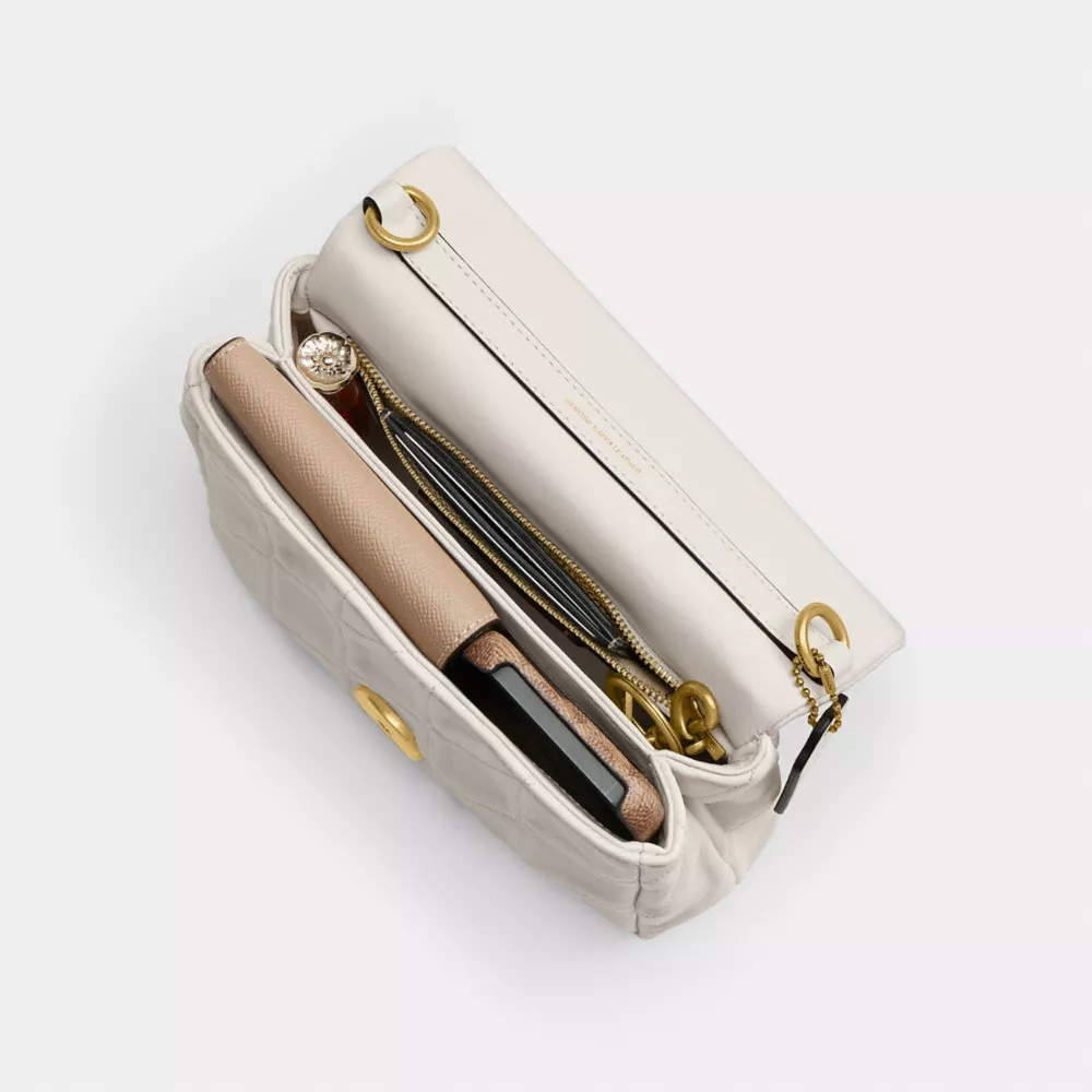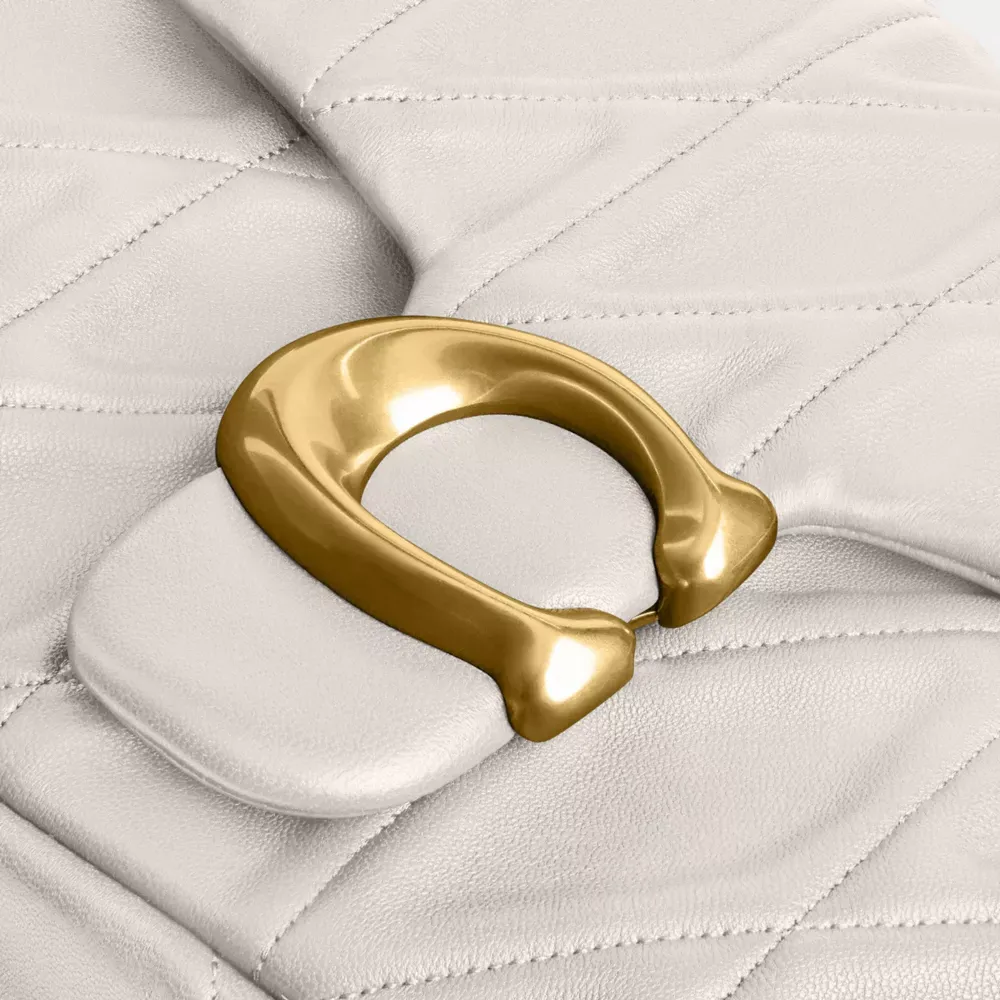 Inspired by the dynamic energy of our hometown New York City, the Times Square Tabby is a modern take on an archival 1970s Coach design. Crafted of quilted washed nappa leather and finished with our Signature hardware for an iconic touch, the structured silhouette features versatile styling options with an adjustable leather and chain strap to wear short or long on the shoulder and an adjustable leather crossbody strap.